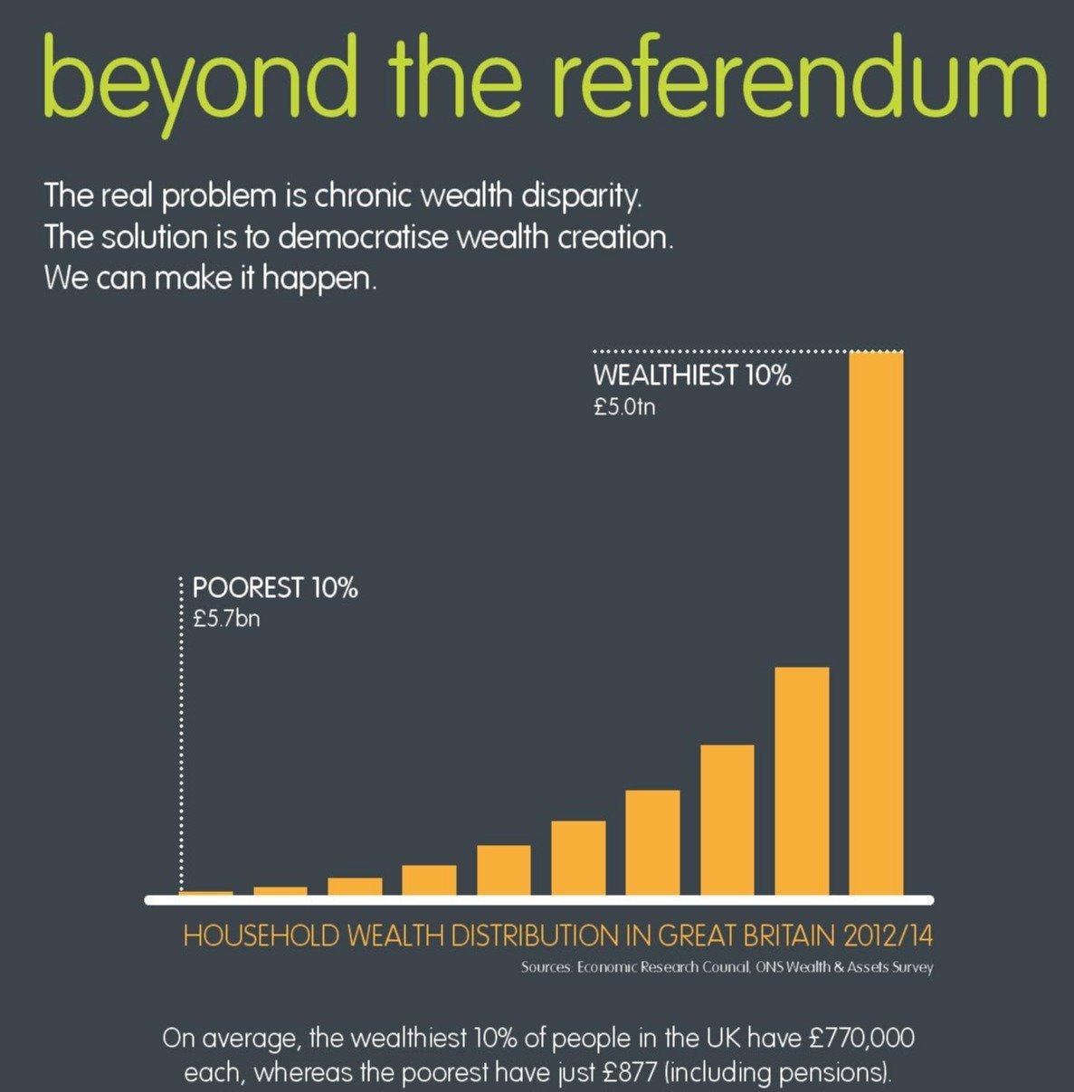 This chart, first published just before the Brexit referendum, shows how polarised wealth in the UK has become. The columns are not cumulative.